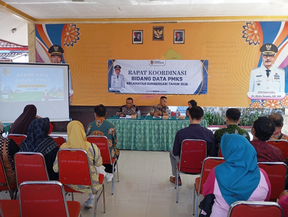 Sumbersari – Keakuratan data adalah fondasi utama agar program kesejahteraan pemerintah tidak sekadar jalan, tapi tepat sasaran. Semangat inilah yang diusung Pemerintah Kecamatan Sumbersari saat menggelar Rapat Koordinasi (Rakor) Bidang Data Pemberdayaan Masyarakat dan Kesejahteraan Sosial (PMKS) di Pendopo Kecamatan Sumbersari, Selasa (21/4).